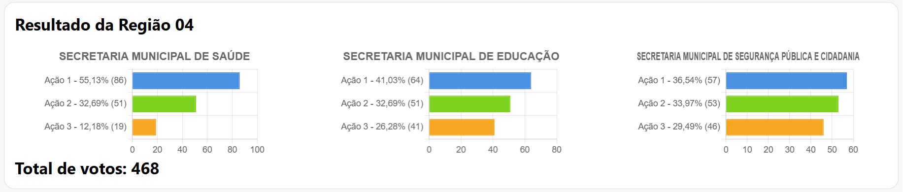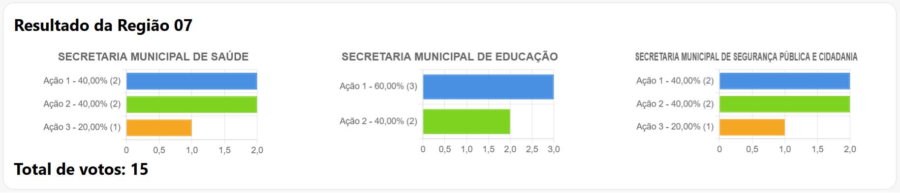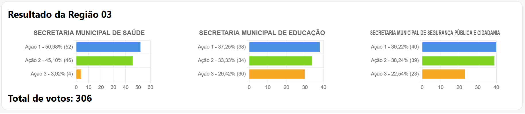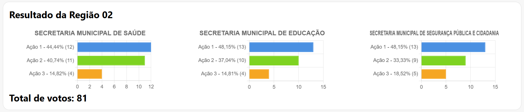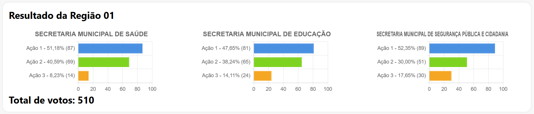 Após a consulta para a LDO 2026, onde foram elencadas as três áreas de prioridade: Saúde, Segurança Pública e Cidadania e Educação, o Departamento de Orçamento Participativo, agora traz três ações de cada secretaria selecionada para que os munícipes elejam o que achar de maior prioridade para o município para que seja inclusa na Lei Orçamentária Anual – LOA 2026.