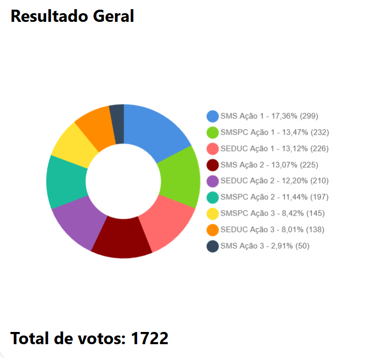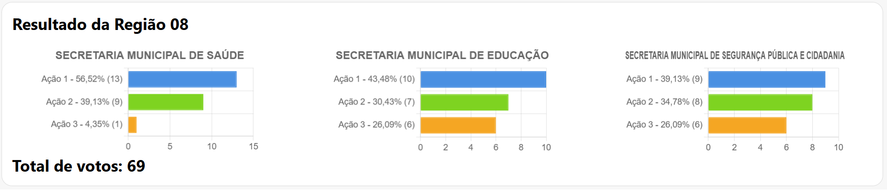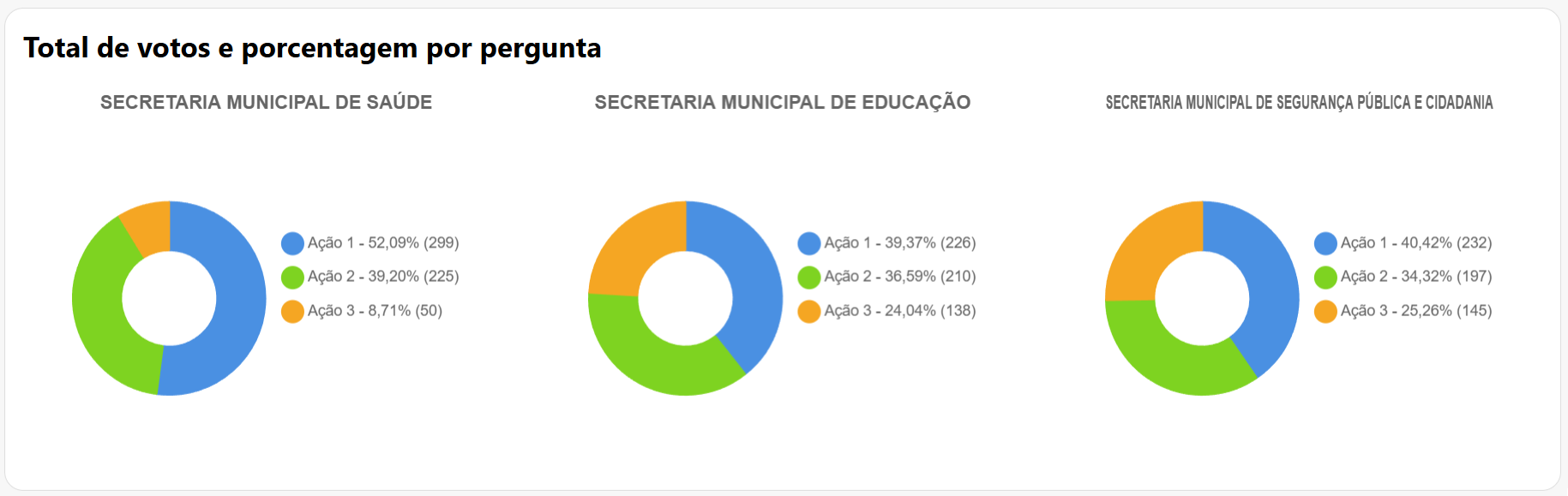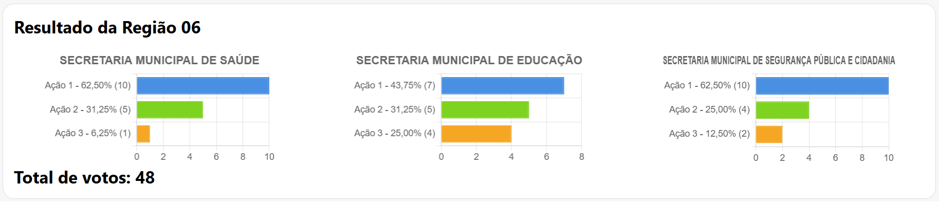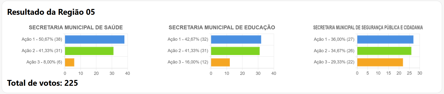 Após a consulta para a LDO 2026, onde foram elencadas as três áreas de prioridade: Saúde, Segurança Pública e Cidadania e Educação, o Departamento de Orçamento Participativo, agora traz três ações de cada secretaria selecionada para que os munícipes elejam o que achar de maior prioridade para o município para que seja inclusa na Lei Orçamentária Anual – LOA 2026.